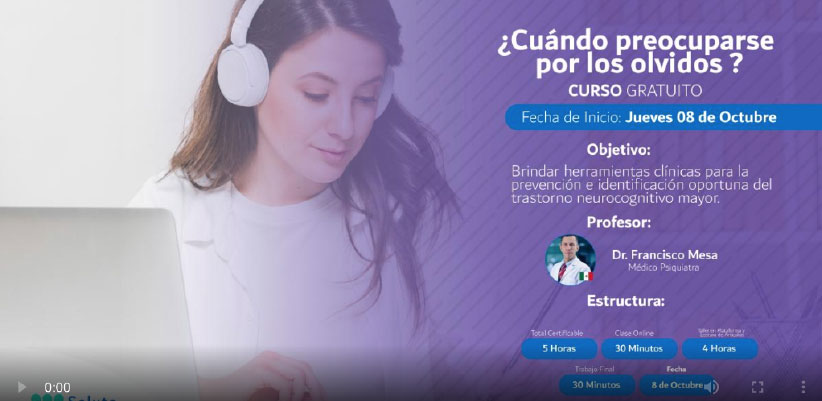 Dirigido a: médicos generales o estudiantes de último semestre Aprende a brindar herramientas clínicas para la prevención e identificación oportuna del trastorno neurocognitivo mayor.